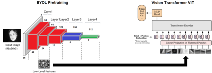 Supervised learning can learn large representational spaces, which are crucial for handling difficult learning tasks. However, due to the design of the model, classical image classification approaches struggle to generalize to new problems and new situations when dealing with small datasets. In fact, supervised learning can lose the location of image features which leads to supervision collapse in very deep architectures. In this paper, we investigate how self-supervision with strong and sufficient augmentation of unlabeled data can train effectively the first layers of a neural network even better than supervised learning, with no need for millions of labeled data. The main goal is to disconnect pixel data from annotation by getting generic task-agnostic low-level features. Furthermore, we look into Vision Transformers (ViT) and show that the low-level features derived from a self-supervised architecture can improve the robustness and the overall performance of this emergent architecture. We evaluated our method on one of the smallest open-source datasets STL-10 and we obtained a significant boost of performance from 41.66% to 83.25% when inputting low-level features from a self-supervised learning architecture to the ViT instead of the raw images.