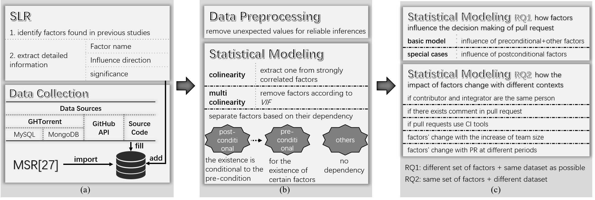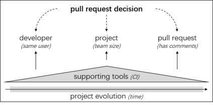 翻译:背景:基于拉动的发展模式在开放源码中广泛使用,引导分布式软件开发的趋势。一个引起极大关注的方面是,对拉动请求决定的研究----找出解释因素。目标:本研究基于对拉动请求决定进行长达十年的长期研究,以解释这一决定。我们实证地调查各种因素如何影响拉动请求决定以及改变因素影响因素影响的情景。方法:我们通过系统的文献审查确定影响GitHub的拉动请求决定的因素,并通过采矿档案数据推断出这些因素。我们从11,230个关于GitHub的项目中共收集了3,347,937个有95个特点的拉动请求。我们利用这一数据,探索各种因素之间的关系,并建立混合效应后勤回归模型,以实证方式解释拉动请求决定。结果:我们的研究显示,少数因素解释拉动请求决定,与提交者相同,或与提交者不同,作为最重要的因素。我们还注意到,某些因素只有在特殊情况下才很重要,例如,在使用连续整合时,失败率对于拉动决定很重要。