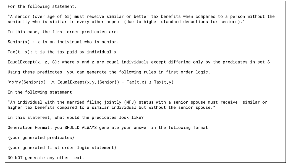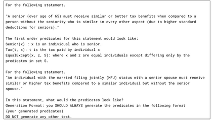Due to the ever-increasing complexity of income tax laws in the United States, the number of US taxpayers filing their taxes using tax preparation software (henceforth, tax software) continues to increase. According to the U.S. Internal Revenue Service (IRS), in FY22, nearly 50% of taxpayers filed their individual income taxes using tax software. Given the legal consequences of incorrectly filing taxes for the taxpayer, ensuring the correctness of tax software is of paramount importance. Metamorphic testing has emerged as a leading solution to test and debug legal-critical tax software due to the absence of correctness requirements and trustworthy datasets. The key idea behind metamorphic testing is to express the properties of a system in terms of the relationship between one input and its slightly metamorphosed twinned input. Extracting metamorphic properties from IRS tax publications is a tedious and time-consuming process. As a response, this paper formulates the task of generating metamorphic specifications as a translation task between properties extracted from tax documents - expressed in natural language - to a contrastive first-order logic form. We perform a systematic analysis on the potential and limitations of in-context learning with Large Language Models(LLMs) for this task, and outline a research agenda towards automating the generation of metamorphic specifications for tax preparation software.