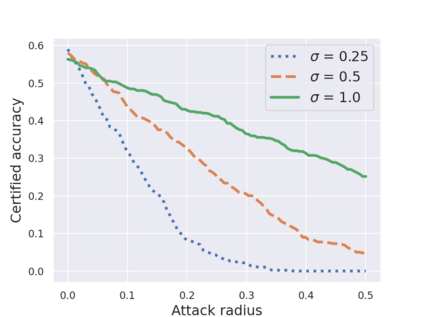 翻译:随机平滑被认为是最先进的对抗性扰动防御。 但是,它大量利用了一个事实,即分类者将输入对象映射成分级概率,而不是侧重于那些通过计算距离进行分类的计量空间到分类原型嵌入空间。在这项工作中,我们将随机平滑推广到几张将输入映射成正常嵌入的微小学习模型上。我们对这种模型的利普施奇茨连续性进行了分析,并用$@ell_2$在几近的学习情景中可能有用的强力测试。我们的理论结果得到了不同数据集实验的证实。
