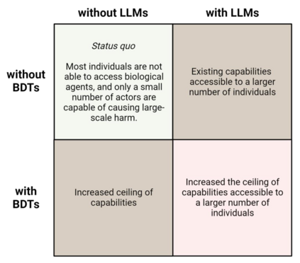 As advancements in artificial intelligence (AI) propel progress in the life sciences, they may also enable the weaponisation and misuse of biological agents. This article differentiates two classes of AI tools that could pose such biosecurity risks: large language models (LLMs) and biological design tools (BDTs). LLMs, such as GPT-4 and its successors, might provide dual-use information and thus remove some barriers encountered by historical biological weapons efforts. As LLMs are turned into multi-modal lab assistants and autonomous science tools, this will increase their ability to support non-experts in performing laboratory work. Thus, LLMs may in particular lower barriers to biological misuse. In contrast, BDTs will expand the capabilities of sophisticated actors. Concretely, BDTs may enable the creation of pandemic pathogens substantially worse than anything seen to date and could enable forms of more predictable and targeted biological weapons. In combination, the convergence of LLMs and BDTs could raise the ceiling of harm from biological agents and could make them broadly accessible. A range of interventions would help to manage risks. Independent pre-release evaluations could help understand the capabilities of models and the effectiveness of safeguards. Options for differentiated access to such tools should be carefully weighed with the benefits of openly releasing systems. Lastly, essential for mitigating risks will be universal and enhanced screening of gene synthesis products.
