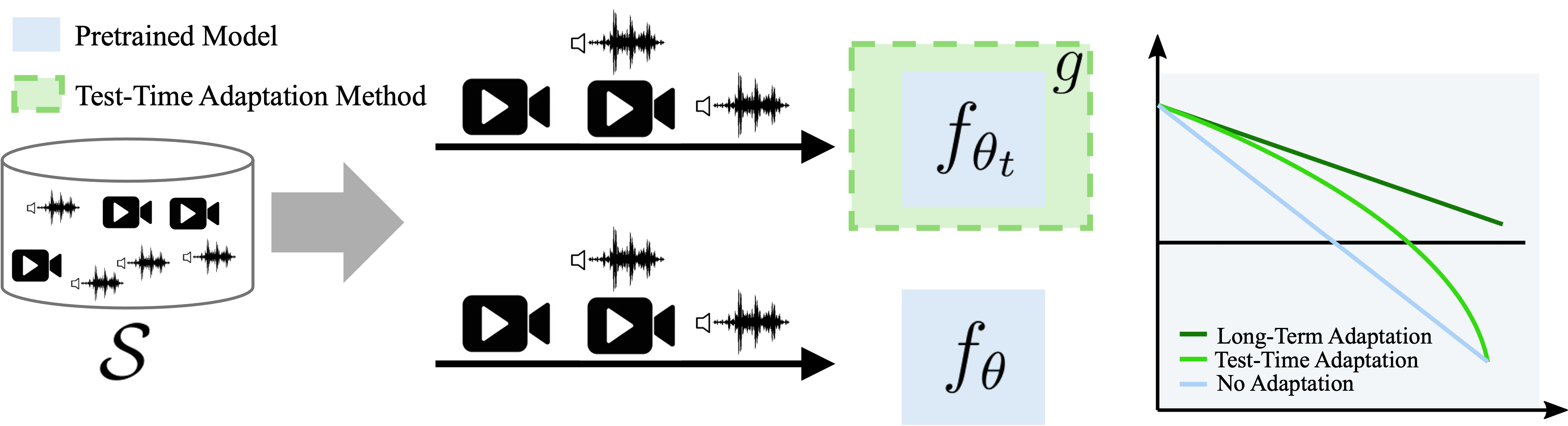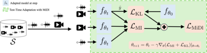 Understanding videos that contain multiple modalities is crucial, especially in egocentric videos, where combining various sensory inputs significantly improves tasks like action recognition and moment localization. However, real-world applications often face challenges with incomplete modalities due to privacy concerns, efficiency needs, or hardware issues. Current methods, while effective, often necessitate retraining the model entirely to handle missing modalities, making them computationally intensive, particularly with large training datasets. In this study, we propose a novel approach to address this issue at test time without requiring retraining. We frame the problem as a test-time adaptation task, where the model adjusts to the available unlabeled data at test time. Our method, MiDl~(Mutual information with self-Distillation), encourages the model to be insensitive to the specific modality source present during testing by minimizing the mutual information between the prediction and the available modality. Additionally, we incorporate self-distillation to maintain the model's original performance when both modalities are available. MiDl represents the first self-supervised, online solution for handling missing modalities exclusively at test time. Through experiments with various pretrained models and datasets, MiDl demonstrates substantial performance improvement without the need for retraining.