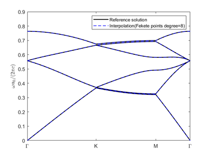 翻译:色散关系反映了波在某种材料中通过时频率与波矢的依赖关系,展示了该材料的性质,因此至关重要。然而,色散关系的重建非常耗时且昂贵。为了解决这个瓶颈,本文提出了一种基于全局多项式插值的高效色散关系重建方案,用于近似二维光子带函数。我们的方法依赖于带函数在第一布里渊区中相对于波矢具有分段解析性的事实。我们在第一布里渊区中利用合适的采样点来解决涉及带函数计算的本征值问题,然后采用拉格朗日插值来逼近整个第一布里渊区内的带函数。数值结果表明,我们提出的方法可以显著提高计算效率。