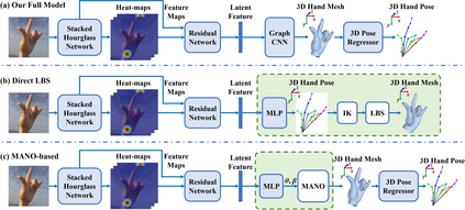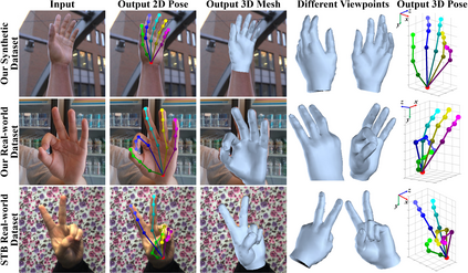 翻译:这项工作解决了一个新颖而具有挑战性的问题,即估计全 3D 手形和从一个 RGB 图像中成型。目前单眼 RGB 图像中的3D 手分析方法大多侧重于估计手键点的三维位置,而手键点无法充分表达三维形状。与此相反,我们提议了一个基于图表进化神经网络(Graph CNN)的方法来重建一个完整的三维手表层,其中包括3D 手形和姿势的更丰富的信息。为了在充分监督下培训网络,我们创建了一个大型合成数据集,包括地面真相 3D 模和 3D 模具。在对真实世界数据集的网络进行微调时,我们建议采用一个弱度的超强方法,即利用深度地图作为培训中的薄弱监督手段。通过对我们拟议的新数据集和两个公共数据集进行广泛的评价,我们表明,我们提出的方法可以产生准确和合理的三维手模,并且能够实现与最新方法相比的高级三维手的准确性估算。