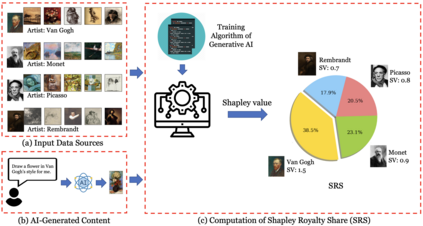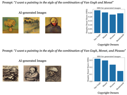 Generative artificial intelligence (AI) systems are trained on large data corpora to generate new pieces of text, images, videos, and other media. There is growing concern that such systems may infringe on the copyright interests of training data contributors. To address the copyright challenges of generative AI, we propose a framework that compensates copyright owners proportionally to their contributions to the creation of AI-generated content. The metric for contributions is quantitatively determined by leveraging the probabilistic nature of modern generative AI models and using techniques from cooperative game theory in economics. This framework enables a platform where AI developers benefit from access to high-quality training data, thus improving model performance. Meanwhile, copyright owners receive fair compensation, driving the continued provision of relevant data for generative model training. Experiments demonstrate that our framework successfully identifies the most relevant data sources used in artwork generation, ensuring a fair and interpretable distribution of revenues among copyright owners.