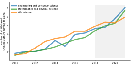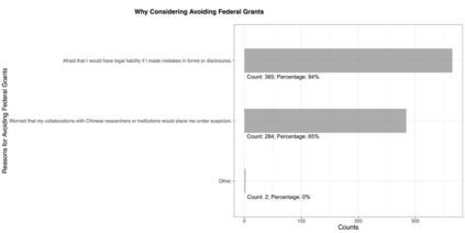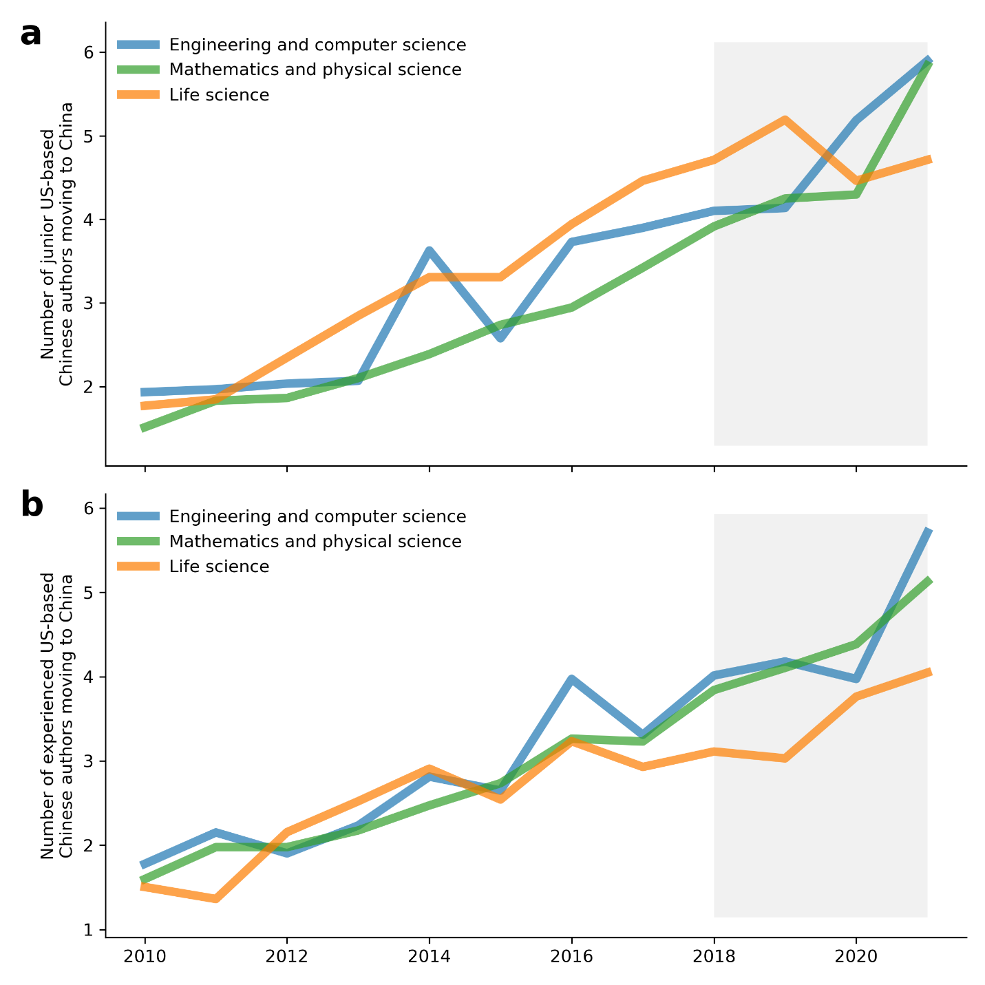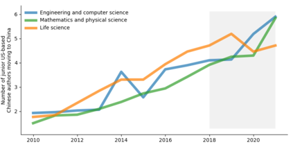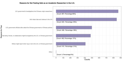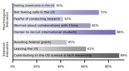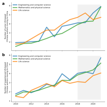 翻译:美国在科学和技术方面的领导地位极大地得益于来自其他国家的移民,特别是近几十年来来自中国的移民。 然而,自2018年在特朗普政府下启动中国倡议以来,由于感受到潜在的联邦调查压力,美国华裔科学家现在面临离开美国的更大激励和申请联邦赠款的更少激励。 分析230多万份科学论文的机构附属关系数据,我们发现华裔科学家从美国返回中国的人数稳步增加。 我们还对美国大学在任期或保有权轨道上聘用的华裔科学家进行了调查(n=1300 ), 结果表明他们普遍感到恐惧和焦虑,因此考虑离开美国和(或)停止申请联邦赠款。