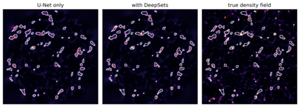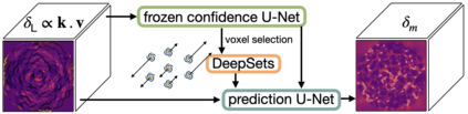 We construct a neural network to perform regression on the local dark-matter density field given line-of-sight peculiar velocities of dark-matter halos, biased tracers of the dark matter field. Our architecture combines a convolutional U-Net with a point-cloud DeepSets. This combination enables efficient use of small-scale information and improves reconstruction quality relative to a U-Net-only approach. Specifically, our hybrid network recovers both clustering amplitudes and phases better than the U-Net on small scales.