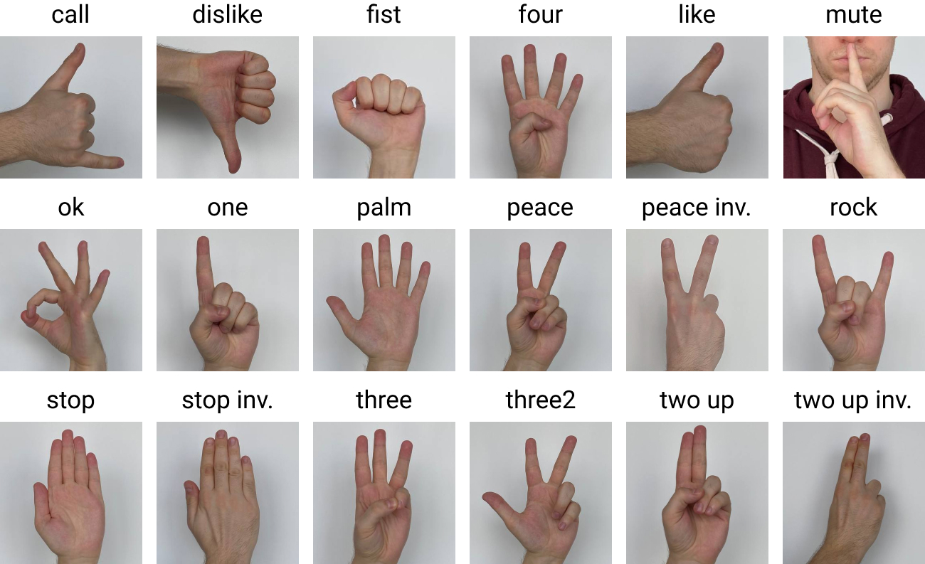 In this paper, we introduce an enormous dataset HaGRID (HAnd Gesture Recognition Image Dataset) for hand gesture recognition (HGR) systems. This dataset contains 552,992 samples divided into 18 classes of gestures. The annotations consist of bounding boxes of hands with gesture labels and markups of leading hands. The proposed dataset allows for building HGR systems, which can be used in video conferencing services, home automation systems, the automotive sector, services for people with speech and hearing impairments, etc. We are especially focused on interaction with devices to manage them. That is why all 18 chosen gestures are functional, familiar to the majority of people, and may be an incentive to take some action. In addition, we used crowdsourcing platforms to collect the dataset and took into account various parameters to ensure data diversity. We describe the challenges of using existing HGR datasets for our task and provide a detailed overview of them. Furthermore, the baselines for the hand detection and gesture classification tasks are proposed.