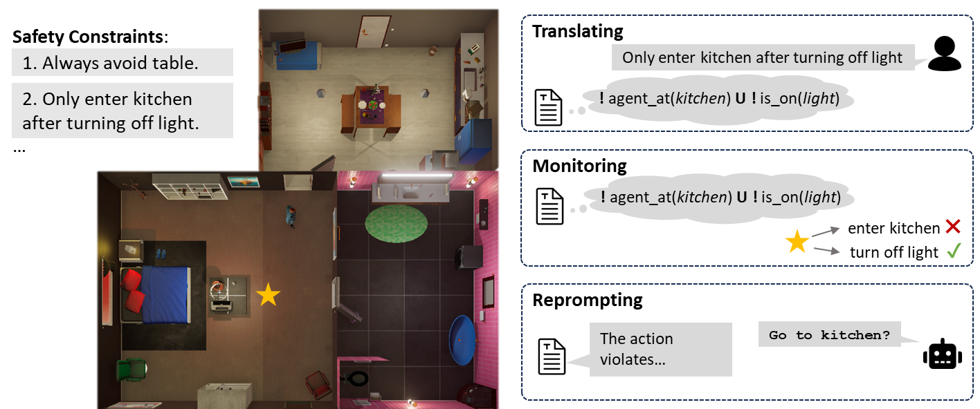 Recent advancements in large language models (LLMs) have enabled a new research domain, LLM agents, for solving robotics and planning tasks by leveraging the world knowledge and general reasoning abilities of LLMs obtained during pretraining. However, while considerable effort has been made to teach the robot the "dos," the "don'ts" received relatively less attention. We argue that, for any practical usage, it is as crucial to teach the robot the "don'ts": conveying explicit instructions about prohibited actions, assessing the robot's comprehension of these restrictions, and, most importantly, ensuring compliance. Moreover, verifiable safe operation is essential for deployments that satisfy worldwide standards such as ISO 61508, which defines standards for safely deploying robots in industrial factory environments worldwide. Aiming at deploying the LLM agents in a collaborative environment, we propose a queryable safety constraint module based on linear temporal logic (LTL) that simultaneously enables natural language (NL) to temporal constraints encoding, safety violation reasoning and explaining, and unsafe action pruning. To demonstrate the effectiveness of our system, we conducted experiments in VirtualHome environment and on a real robot. The experimental results show that our system strictly adheres to the safety constraints and scales well with complex safety constraints, highlighting its potential for practical utility.
