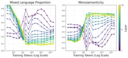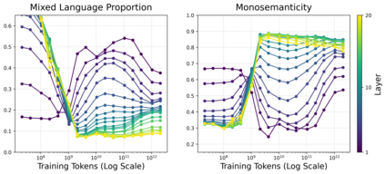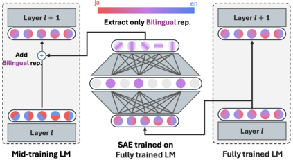This study explores how bilingual language models develop complex internal representations. We employ sparse autoencoders to analyze internal representations of bilingual language models with a focus on the effects of training steps, layers, and model sizes. Our analysis shows that language models first learn languages separately, and then gradually form bilingual alignments, particularly in the mid layers. We also found that this bilingual tendency is stronger in larger models. Building on these findings, we demonstrate the critical role of bilingual representations in model performance by employing a novel method that integrates decomposed representations from a fully trained model into a mid-training model. Our results provide insights into how language models acquire bilingual capabilities.