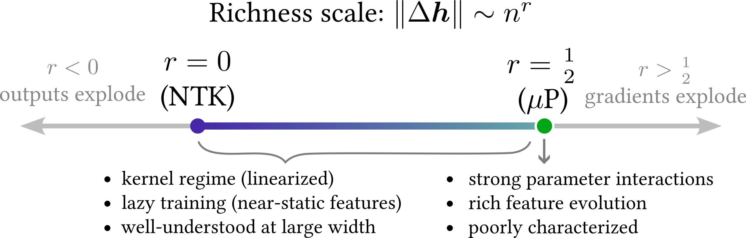 A central theme of the modern machine learning paradigm is that larger neural networks achieve better performance on a variety of metrics. Theoretical analyses of these overparameterized models have recently centered around studying very wide neural networks. In this tutorial, we provide a nonrigorous but illustrative derivation of the following fact: in order to train wide networks effectively, there is only one degree of freedom in choosing hyperparameters such as the learning rate and the size of the initial weights. This degree of freedom controls the richness of training behavior: at minimum, the wide network trains lazily like a kernel machine, and at maximum, it exhibits feature learning in the so-called $\mu$P regime. In this paper, we explain this richness scale, synthesize recent research results into a coherent whole, offer new perspectives and intuitions, and provide empirical evidence supporting our claims. In doing so, we hope to encourage further study of the richness scale, as it may be key to developing a scientific theory of feature learning in practical deep neural networks.