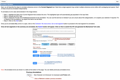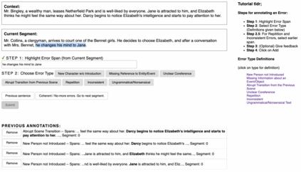 翻译:由于缺乏适当的评价框架,无法在总结长篇案文方面取得进展。当必须编写长篇摘要以适当涵盖该案文的各个方面时,该摘要需要提出一种连贯的说明,读者才能理解,但目前的自动和人文评价方法无法找出一致性方面的缺陷。在这项工作中,我们引入了SNAC, 这是一种叙述一致性评价框架,其根源在于细微的长篇说明;我们开发了生成的叙述性摘要中的一致性错误分类,收集了150本书和电影剧本摘要中6.6k句的跨层次说明。我们的工作首次描述了由最先进的总结模型产生的一致性错误,以及征求人群说明者作出一致性判断的程序。此外,我们表明,所收集的说明使我们能够培训强有力的分类人员,以便在生成的摘要中将一致性错误自动本地化,并将过去在一致性模型中的工作基准化。最后,我们的SNAC框架可以支持今后在长篇总结和一致性评价方面的工作,包括改进的总结模型和后摘要校正。