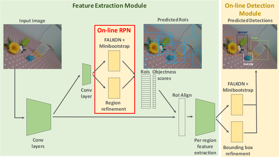 Object detection is a fundamental task for robots to operate in unstructured environments. Today, there are several deep learning algorithms that solve this task with remarkable performance. Unfortunately, training such systems requires several hours of GPU time. For robots, to successfully adapt to changes in the environment or learning new objects, it is also important that object detectors can be re-trained in a short amount of time. A recent method [1] proposes an architecture that leverages on the powerful representation of deep learning descriptors, while permitting fast adaptation time. Leveraging on the natural decomposition of the task in (i) regions candidate generation, (ii) feature extraction and (iii) regions classification, this method performs fast adaptation of the detector, by only re-training the classification layer. This shortens training time while maintaining state-of-the-art performance. In this paper, we firstly demonstrate that a further boost in accuracy can be obtained by adapting, in addition, the regions candidate generation on the task at hand. Secondly, we extend the object detection system presented in [1] with the proposed fast learning approach, showing experimental evidence on the improvement provided in terms of speed and accuracy on two different robotics datasets. The code to reproduce the experiments is publicly available on GitHub.