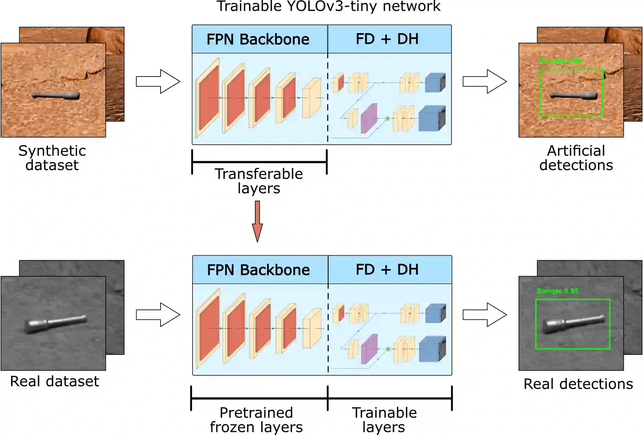 翻译:火星取样返回运动的目标是从火星表面收集土壤样品,并将这些样品送回地球进一步研究。这些样品将由远距探测器购置并储存在金属管中,并存放在火星表面。作为这一运动的一部分,预计样品提取路弗将负责150多火星索尔以上35个样品管的本地化和收集。自主能力对整个运动的成功至关重要,特别是对样品提取路弗来说。这项工作为自动探测和估计样品管提出了新的方法。在探测阶段,提出了深神经网络和从合成数据集中学习的转移。数据集是从火星情景的摄影现实3D模拟中创建的。此外,计算机视野技术用于估计所检测到的样品管构成。最后,对样品本地化程序的实验室测试是使用类似于火星试验床的Exomars测试路弗进行的。这些测试证实了不同硬件结构中的拟议方法,提供了与样品探测和表面估计有关的有希望的结果。