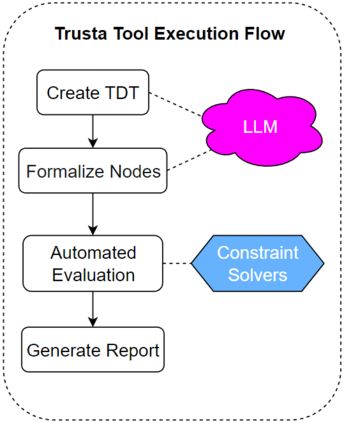 Assurance cases can be used to argue for the safety of products in safety engineering. In safety-critical areas, the construction of assurance cases is indispensable. Trustworthiness Derivation Trees (TDTs) enhance assurance cases by incorporating formal methods, rendering it possible for automatic reasoning about assurance cases. We present Trustworthiness Derivation Tree Analyzer (Trusta), a desktop application designed to automatically construct and verify TDTs. The tool has a built-in Prolog interpreter in its backend, and is supported by the constraint solvers Z3 and MONA. Therefore, it can solve constraints about logical formulas involving arithmetic, sets, Horn clauses etc. Trusta also utilizes large language models to make the creation and evaluation of assurance cases more convenient. It allows for interactive human examination and modification. We evaluated top language models like ChatGPT-3.5, ChatGPT-4, and PaLM 2 for generating assurance cases. Our tests showed a 50%-80% similarity between machine-generated and human-created cases. In addition, Trusta can extract formal constraints from text in natural languages, facilitating an easier interpretation and validation process. This extraction is subject to human review and correction, blending the best of automated efficiency with human insight. To our knowledge, this marks the first integration of large language models in automatic creating and reasoning about assurance cases, bringing a novel approach to a traditional challenge. Through several industrial case studies, Trusta has proven to quickly find some subtle issues that are typically missed in manual inspection, demonstrating its practical value in enhancing the assurance case development process.