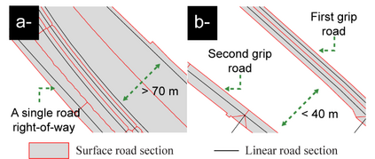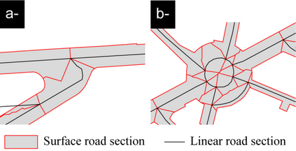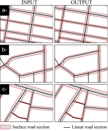 The real world and its geographic objects are modeled and represented in different spatial databases. Each of these databases provides only a partial description (in space and time) of the geographic objects represented. Sometimes, producers and users of databases need to connect several of them for updates or comparisons. Much of the work in spatial database management focuses on matching these spatial databases and more particularly network databases, such as road networks. With regard to network data, one situation remains neglected, that of matching a linear database (with polylines objects) with a surface database (with polygons objects). In any case, users also need to connect these two types of spatial database. In this paper, a case study is made using French examples (Cachan, near Paris), as well as international case studies (Bordeaux in France, Victoria in Canada, and Copenhagen in Denmark), to propose an approach intended to make coherent network geographical objects in two different reference frames (linear and surface). This issue is addressed here through the example of road data. The surface data are then formalized in order to adapt them to linear data describing the same geographical objects. In the end, a polygon in the surface data corresponds to a single polyline in the linear data. This consistency should simplify the transfer of information from one reference frame (linear or surface) to the other. In other words, the methodology developed aims to make linear and surfacegeographic data interoperable.