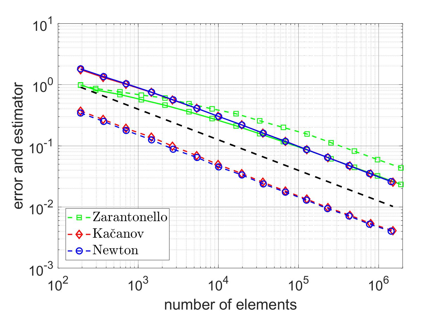 翻译:我们重新审视了希尔伯特空间非线性方程式迭代解决方案的统一方法。我们的主要看法是,[海德和维赫勒, Math.comp. 89 (2020), Calcolo 57 (2020)] 的一般方法在(抽象)强烈的单质问题中满足了一种能量收缩财产。而这种财产则是最近在[甘特纳等人,arXiv:2003.10785] 进行的趋同分析中的关键成分。我们特别推断,适应性迭代线性线性有限要素方法(AILFEMs)在自由度和总计算时间方面,与最佳代数率完全线性趋同。