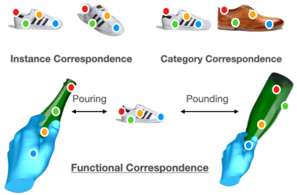 翻译:在视觉数据中找到通信的能力是大多数计算机视觉任务的实质。 但正确的对应是什么? 视觉通信的任务是什么样的? 视觉通信的任务是对同一对象实例的两个不同图像有明确的定义。 在属于同一类别对象的两个图像中,视觉通信在多数情况下是合理定义的。 但是,对于两个完全不同类别对象 -- -- 例如鞋和瓶子 -- -- 之间的通信来说,视觉通信是什么样的? 是否有任何通信? 受人能力所启发的: (a) 超越语义类和(b) 推断功能性负担能力, 我们在这个文件中引入功能性通信问题。 鉴于两个对象的图像, 我们问一个简单的问题: 这两个图像之间有哪些属于同一类别, 视觉通信在多数情况下是相当的。 例如, 瓶和鞋之间的通信是什么样的通信, 用于打击任务或倾注任务。 我们引入一个新的数据集: 调控点有10项任务和20种对象类的地面对真理通信的定位。 我们还引入一个模块化任务驱动的演示来解决这一问题, 并且证明我们所学到的表达方式对于这项任务来说是有效的。 但是最重要的是, 我们的信号是学习了我们一般的图像, 我们学习了对面的演示 的演示会 将多少 。
