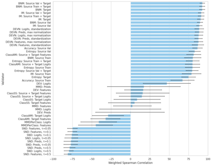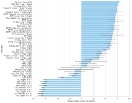 This paper compares and ranks 11 UDA validation methods. Validators estimate model accuracy, which makes them an essential component of any UDA train-test pipeline. We rank these validators to indicate which of them are most useful for the purpose of selecting optimal models, checkpoints, and hyperparameters. In addition, we propose and compare new effective validators and significantly improved versions of existing validators. To the best of our knowledge, this large-scale benchmark study is the first of its kind in the UDA field.