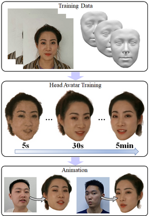 翻译:面部重新反应使用NERF后,最近的方法可以从一个单视视频中恢复光现实的 3D 头电动。 不幸的是,基于 NERF 方法的培训过程非常耗时,因为 NERF 方法中使用的 MLP 效率低,需要过多的迭代才能聚合。为了解决这个问题,我们建议使用运动-软件神经氧化物的神经氧化物模型,即快速的 3D 头电动重建方法ManVatar。 ManVatar 是最先从脑血管外观中分离出光学表达动作的调和,并用神经毒气模拟表达动作。 特别是, 运动觉神经氧化物是由多四维高压的加权配制生成的。 4D 电磁共和一对一对一对应3DMM 表达基, 和3DMM 表达系数的重量相同。 从我们的新表述中得益益, 提议的ManVatar 可以在仅仅5分钟内恢复光现实头电动头( 使用纯的面膜合成法) 。 这比状态要快得多, 。