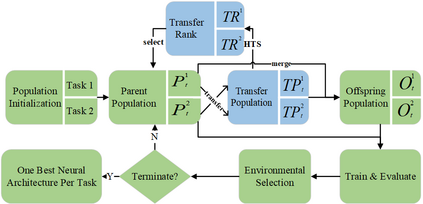 Multi-task neural architecture search (NAS) enables transferring architectural knowledge among different tasks. However, ranking disorder between the source task and the target task degrades the architecture performance on the downstream task. We propose KTNAS, an evolutionary cross-task NAS algorithm, to enhance transfer efficiency. Our data-agnostic method converts neural architectures into graphs and uses architecture embedding vectors for the subsequent architecture performance prediction. The concept of transfer rank, an instance-based classifier, is introduced into KTNAS to address the performance degradation issue. We verify the search efficiency on NASBench-201 and transferability to various vision tasks on Micro TransNAS-Bench-101. The scalability of our method is demonstrated on DARTs search space including CIFAR-10/100, MNIST/Fashion-MNIST, MedMNIST. Experimental results show that KTNAS outperforms peer multi-task NAS algorithms in search efficiency and downstream task performance. Ablation studies demonstrate the vital importance of transfer rank for transfer performance.
