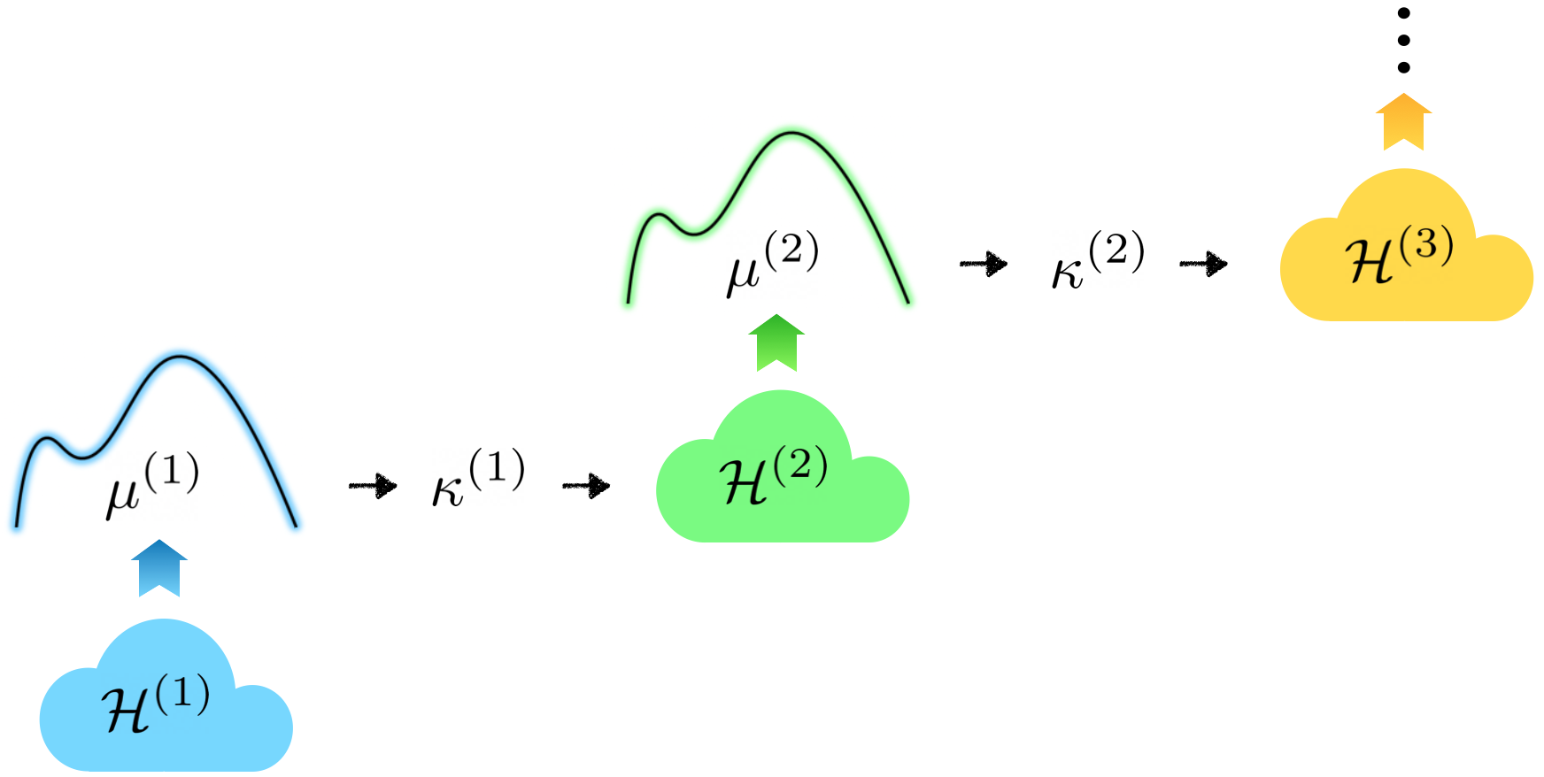 The characterization of the functions spaces explored by neural networks (NNs) is an important aspect of deep learning theory. In this work, we view a multi-layer NN with arbitrary width as defining a particular hierarchy of reproducing kernel Hilbert spaces (RKHSs), named a Neural Hilbert Ladder (NHL). This allows us to define a function space and a complexity measure that generalize prior results for shallow NNs, and we then examine their theoretical properties and implications in several aspects. First, we prove a correspondence between functions expressed by L-layer NNs and those belonging to L-level NHLs. Second, we prove generalization guarantees for learning an NHL with the complexity measure controlled. Third, corresponding to the training of multi-layer NNs in the infinite-width mean-field limit, we derive an evolution of the NHL characterized as the dynamics of multiple random fields. Fourth, we show examples of depth separation in NHLs under ReLU and quadratic activation functions. Finally, we complement the theory with numerical results to illustrate the learning of RKHS in NN training.