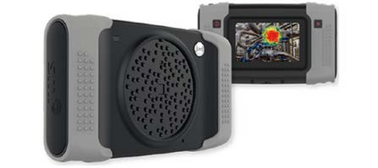 Coughing is a typical symptom of COVID-19. To detect and localize coughing sounds remotely, a convolutional neural network (CNN) based deep learning model was developed in this work and integrated with a sound camera for the visualization of the cough sounds. The cough detection model is a binary classifier of which the input is a two second acoustic feature and the output is one of two inferences (Cough or Others). Data augmentation was performed on the collected audio files to alleviate class imbalance and reflect various background noises in practical environments. For effective featuring of the cough sound, conventional features such as spectrograms, mel-scaled spectrograms, and mel-frequency cepstral coefficients (MFCC) were reinforced by utilizing their velocity (V) and acceleration (A) maps in this work. VGGNet, GoogLeNet, and ResNet were simplified to binary classifiers, and were named V-net, G-net, and R-net, respectively. To find the best combination of features and networks, training was performed for a total of 39 cases and the performance was confirmed using the test F1 score. Finally, a test F1 score of 91.9% (test accuracy of 97.2%) was achieved from G-net with the MFCC-V-A feature (named Spectroflow), an acoustic feature effective for use in cough detection. The trained cough detection model was integrated with a sound camera (i.e., one that visualizes sound sources using a beamforming microphone array). In a pilot test, the cough detection camera detected coughing sounds with an F1 score of 90.0% (accuracy of 96.0%), and the cough location in the camera image was tracked in real time.