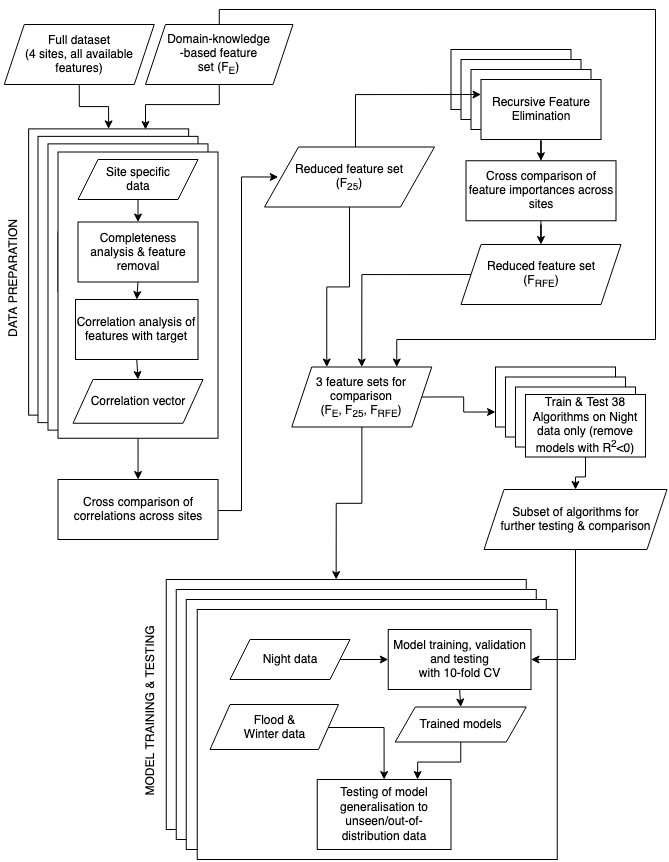 翻译:更深入地了解蒸发的驱动因素及其组成部分(蒸发和蒸发)的建模,对于未来数十年全球水资源的监测和管理具有重大意义。在这项工作中,我们开发了一个框架,从候选一组中找出最佳的机器学习算法,选择最佳的预测特征,以及其远征的分级特征,以便预测准确性。我们的实验将4个湿地地点的3个不同的特征集作为输入8个候选机器学习算法的投入,提供了96套实验配置。鉴于参数数量之多,我们的结果有力地证明,尽管所研究的所有湿地地点有相似之处,但没有在所有这些地点设置任何独特的最佳机器学习算法或特征。在研究特征重要性时发现的一个重要发现是,甲烷通量(其与蒸发热量的关系一般没有研究)可能有助于进一步理解生物物理过程。