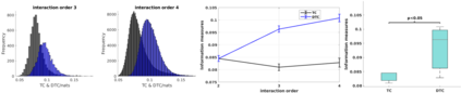 翻译:人脑区域之间的统计依赖通常使用成对的度量来估计,但这并不能捕捉更高阶的信息交互。探索高阶信息交互对于更好地理解人脑信息处理至关重要。为了解决这个问题,我们应用了多变量互信息, 特别是全相关和对偶全相关以揭示人脑中的高阶信息。在本文中,我们使用基于瑞尼(Renyi)熵的矩阵方法来估计这些度量,这种方法提供了一种直接且易于解释的方法,不受多元时间序列概率分布函数的直接假设的限制。我们将这些度量应用于静息态fMRI数据以研究人脑的高阶交互。我们的结果表明, 随着交互阶数的增加,所捕捉到的高阶信息交互逐渐增加。此外,我们还观察到对偶全相关和全相关之间的相关性随着交互阶数的增加而逐渐增加。另外,对偶全相关值与全相关值之间的显著性,也表明人脑在静息状态下呈现出协同优势。