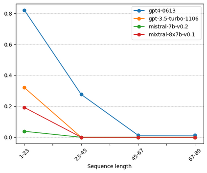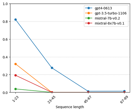 Language models are now capable of solving tasks that require dealing with long sequences consisting of hundreds of thousands of tokens. However, they often fail on tasks that require repetitive use of simple rules, even on sequences that are much shorter than those seen during training. For example, state-of-the-art LLMs can find common items in two lists with up to 20 items but fail when lists have 80 items. In this paper, we introduce Lissard, a benchmark comprising seven tasks whose goal is to assess the ability of models to process and generate wide-range sequence lengths, requiring repetitive procedural execution. Our evaluation of open-source (Mistral-7B and Mixtral-8x7B) and proprietary models (GPT-3.5 and GPT-4) show a consistent decline in performance across all models as the complexity of the sequence increases. The datasets and code are available at https://github.com/unicamp-dl/Lissard