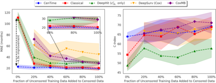 Survival analysis is a valuable tool for estimating the time until specific events, such as death or cancer recurrence, based on baseline observations. This is particularly useful in healthcare to prognostically predict clinically important events based on patient data. However, existing approaches often have limitations; some focus only on ranking patients by survivability, neglecting to estimate the actual event time, while others treat the problem as a classification task, ignoring the inherent time-ordered structure of the events. Furthermore, the effective utilization of censored samples - training data points where the exact event time is unknown - is essential for improving the predictive accuracy of the model. In this paper, we introduce CenTime, a novel approach to survival analysis that directly estimates the time to event. Our method features an innovative event-conditional censoring mechanism that performs robustly even when uncensored data is scarce. We demonstrate that our approach forms a consistent estimator for the event model parameters, even in the absence of uncensored data. Furthermore, CenTime is easily integrated with deep learning models with no restrictions on batch size or the number of uncensored samples. We compare our approach with standard survival analysis methods, including the Cox proportional-hazard model and DeepHit. Our results indicate that CenTime offers state-of-the-art performance in predicting time-to-death while maintaining comparable ranking performance. Our implementation is publicly available at https://github.com/ahmedhshahin/CenTime.