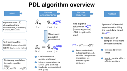 翻译:从人口或时间过程数据推断动态系统的驱动方程式,在生物化学、流行病学、金融数学和其他许多科学领域都很重要。尽管存在着从轨迹测量中学习动态的算法,但很少尝试从人口数据中直接推断动态系统。在这项工作中,我们根据随机差异方程式,推论并随后计算估算了Fokker-Planck方程式,该方程式描述了人口概率密度的变化。随后,根据USDL方法,我们预测Fokker-Planck方程式为一套适当的测试功能,将其转化为直线方程式系统。最后,我们采用稀有的推论方法解决后一种系统,从而引导动态系统的驱动力。我们的方法在合成和真实数据中都有说明,包括非线性、多式随机差异方程式、生物化学反应网络以及大规模细胞测量生物测量。