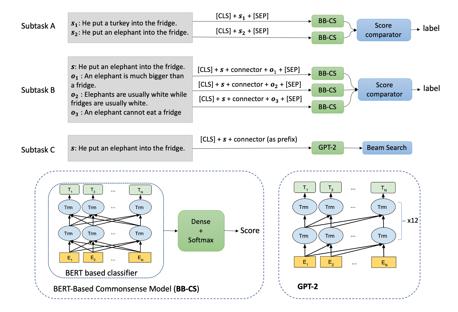 翻译:在本文中,我们介绍SemEval-2020任务4(Comve)4, 其中包括三个子任务,目的是评估一个系统能否区分对人类而言没有意义的自然语言语句和对人类而言没有意义的自然语言语句,并提供理由。具体地说,在我们的第一个子任务中,参与系统必须从两种类似语言的自然语言语句中选择一种语言语句,一种语言语句是有道理的,另一种语言是没有意义的。第二个子任务要求从三个选项中选择一个系统来选择一个关键原因,三个选项是为什么给定的语句没有意义。在第三个子任务中,参与系统需要自动产生理由。