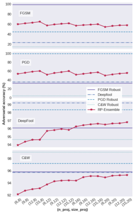 翻译:我们建议采用两种培训技术,提高神经网络对对抗性攻击的稳健性,即操纵恶意制造的、使网络误入预测的输入,两种方法都独立于选定的攻击,利用原始输入的随机预测,目的是利用维度减低和对抗性扰动的某些典型几何特性,第一种技术称为RP组合,由经过多种原始输入预测版本培训的网络组成。第二种方法称为RP-Regularizer,在培训目标中增加了一个正规化术语。