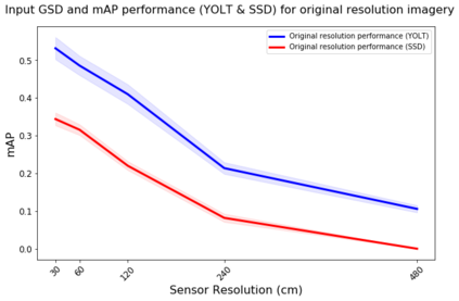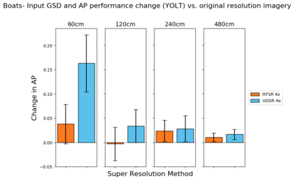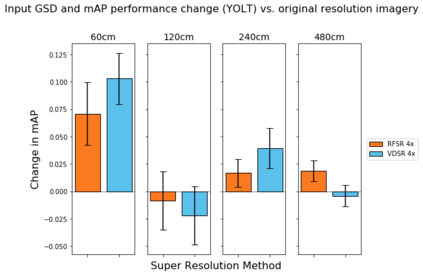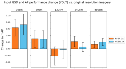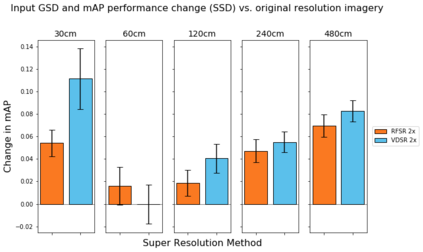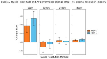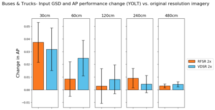 翻译:我们探索超分辨率技术在卫星图像中的应用,以及这些技术对物体探测算法性能的影响。具体地说,我们加强卫星图像,使其超出其本地分辨率,并测试我们是否能够查明各种类型的车辆、飞机和船只,其精确度高于本地分辨率。我们利用深度超分辨率(VDSR)框架和自定义随机森林超级分辨率(RFSR)框架,在从30厘米到4.8米的5个不同分辨率中,我们产生2x、4x和8x的超分辨率。我们利用本地和超溶解数据,然后利用SIMRDWN天体探测框架培训若干自定探测模型。SIMRDW天体探测框架,并测试我们能否将一些受欢迎的物体探测算法(如SSDSD、YOLO)合并为一个统一框架,用于快速探测大型卫星图像中的物体。这个方法使我们能够量化超分辨率对多个等级和分辨率的物体探测性能的影响。我们还量化物体探测的性能,作为本地分辨率和天体尺寸的改进功能,然后用SIMRDN天体探测模型进行若干自定探测模型检测模型模型。我们设定的测试,我们注意到,从平均分辨率为平均精确分辨率为30MMAMAMAM的分辨率的性能,从平均分辨率的性能降解为最低分辨率为0.30的性能,从平均分辨率为0.0.30分辨率的性能,从平均分辨率为MAMA=0.0.0.0.0.0.0.0.0.0.0.0.3的性能。