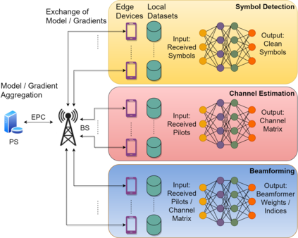 翻译:无模型技术,例如机器学习(ML)最近吸引了对物理层设计的兴趣,例如符号探测、频道估计和波束成形等,这些ML技术大多采用集中学习(CL)办法,假设参数服务器(PS)有数据集,要求从边缘设备(如移动电话)向PS传输数据。 利用边缘生成的数据,最近提议采用联邦学习(FL)作为分布式学习办法,其中每个设备计算模型参数并将其发送给PS,用于模型汇总,而数据集则保持在边缘,因此,FL比CL更具有通信效率和隐私保护,适用于无线通信情景,在边缘设备生成数据。文章讨论了基于FL的物理层设计问题培训的最新进展,并确定了相关的设计挑战,以及改进通信间接费用、模型/数据/硬件复杂性方面业绩的可能解决办法。