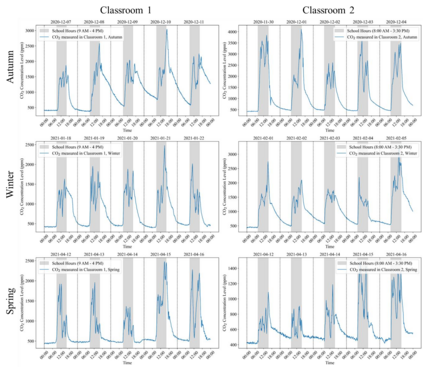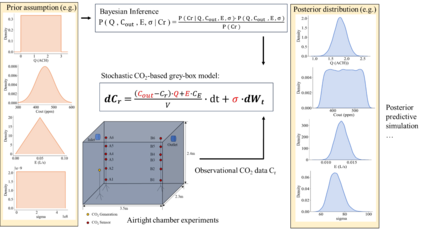 The COVID-19 pandemic brought global attention to indoor air quality (IAQ), which is intrinsically linked to clean air change rates. Estimating the air change rate in indoor environments, however, remains challenging. It is primarily due to the uncertainties associated with the air change rate estimation, such as pollutant generation rates, dynamics including weather and occupancies, and the limitations of deterministic approaches to accommodate these factors. In this study, Bayesian inference was implemented on a stochastic CO2-based grey-box model to infer modeled parameters and quantify uncertainties. The accuracy and robustness of the ventilation rate and CO2 emission rate estimated by the model were confirmed with CO2 tracer gas experiments conducted in an airtight chamber. Both prior and posterior predictive checks (PPC) were performed to demonstrate the advantage of this approach. In addition, uncertainties in real-life contexts were quantified with an incremental variance {\sigma} for the Wiener process. This approach was later applied to evaluate the ventilation conditions within two primary school classrooms in Montreal. The Equivalent Clean Airflow Rate (ECAi) was calculated following ASHRAE 241, and an insufficient clean air supply within both classrooms was identified. A supplement of 800 cfm clear air delivery rate (CADR) from air-cleaning devices is recommended for a sufficient ECAi. Finally, steady-state CO2 thresholds (Climit, Ctarget, and Cideal) were carried out to indicate when ECAi requirements could be achieved under various mitigation strategies, such as portable air cleaners and in-room ultraviolet light, with CADR values ranging from 200 to 1000 cfm.