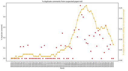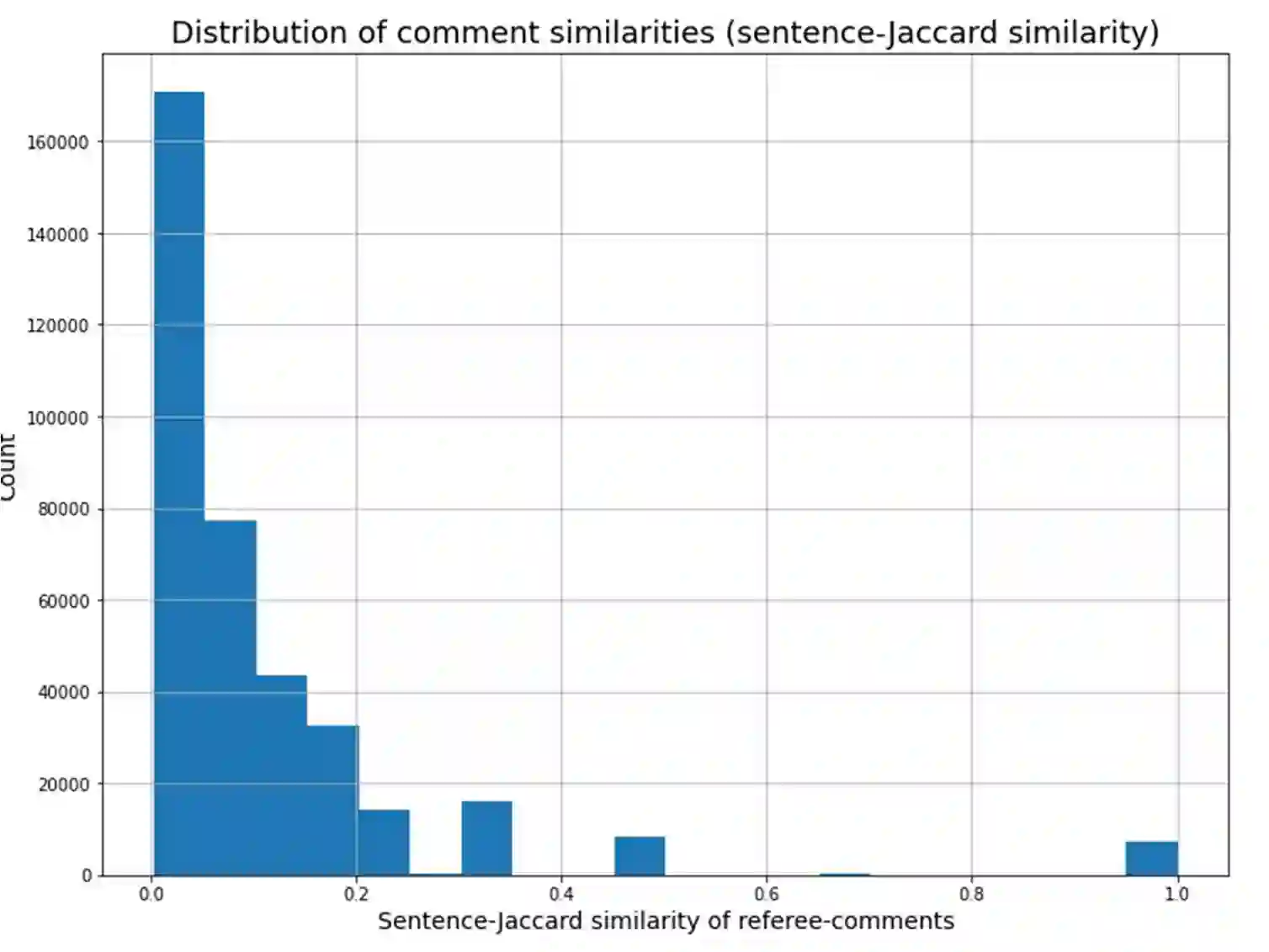 翻译:对同行审议期间从被审查人收到的意见进行分析,以确定重复和部分重复的比率,对于两个不同的被审查人来说,提交相同的意见是非常罕见的,因此,这种情况很少发生的情况是值得注意的;在某些情况下,纸浆机似乎制造假的裁判人账户,并利用这些账户提交假的同侪审查报告,其中包括复制和张贴在多个审查中的评论;因此,在被审查人意见中寻找重复之处是一般地寻找不当行为的有效方法,因为纸浆机的不当行为形式超越了同行审议欺诈。这些搜索方法使得可以自动发现不当行为候选人,然后可以仔细调查,以确认是否确实发生了不当行为。 被审查人可以分享模板报告的理由是无辜的,因此,这些方法并不是为了自动诊断不当行为。