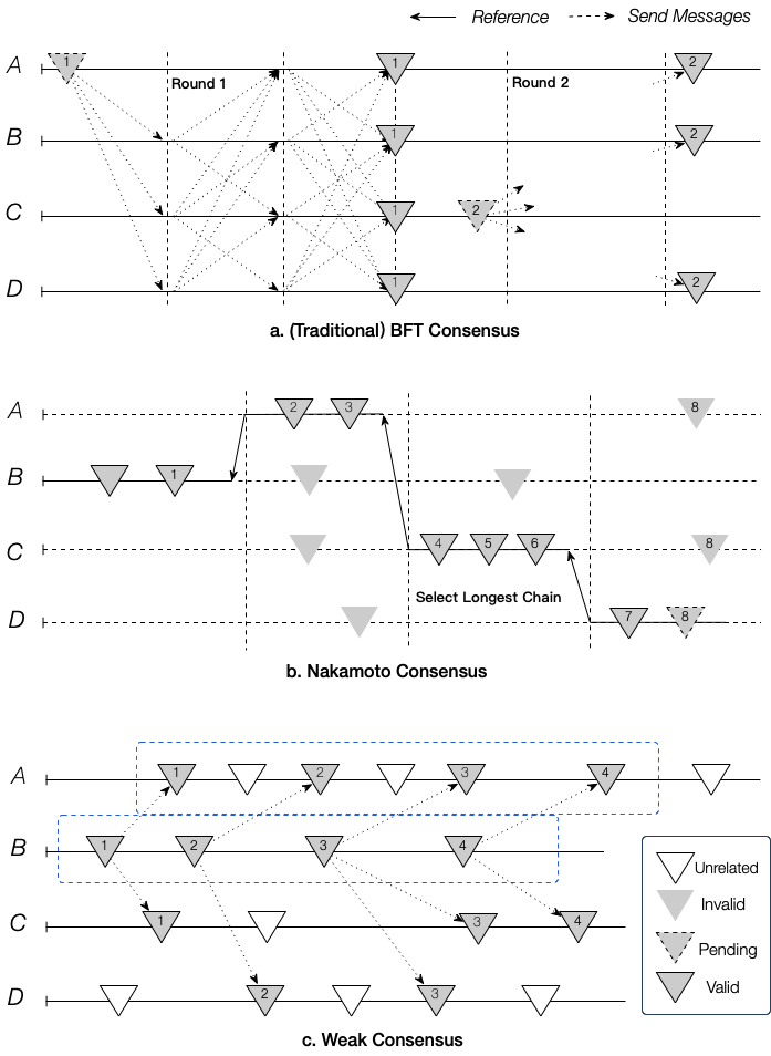 翻译:提出了大量协商一致算法,然而,严格一致的要求限制了这些算法的广泛采用,特别是在高性能要求的系统中。在本文件中,我们提出一个弱性共识算法,它只能维持电文之间相对立场的一致性。我们用这种协商一致算法来建立一个高性能的块链系统,称为\ textit{Sphinx}。我们用32k+的代码行来实施这个系统,包括所有组成部分,如共识/P2P/Ledger/etc。评价表明,Sphinx能够达到43kTPS(8个全节)的最高通过量,大大快于Ethereum(Ethereum)等现有块链系统,以同样的实验环境。我们最了解的是,我们用一个完全执行的块链系统来展示第一个弱的协商一致算法。