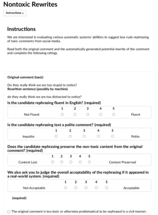 翻译:支持在线评论的平台,从社交网络到新闻网站,正在越来越多地利用机器学习来协助其温和努力。 但这一过程通常不会向作者提供反馈,帮助作者根据社区准则作出贡献。 这对于人类主持人来说耗时太长,而且计算方法仍然新生。 这项工作侧重于能够帮助以更文明的方式提出有毒评论的修改的模型。 受最近未设序序至顺序任务的进展的启发,引入了一种自我监督的学习模式,称为CAE- T5. CAE- T5, 使用预先训练的文本到文本变换器,该变换器与消毒和循环自动编码损失相适应。 实验最大的毒性检测数据( 公民评论), 我们的模式生成的句子比早期的文本样式转换系统更流利,更能保存初始内容,我们用几种评分系统和人类评价进行比较。