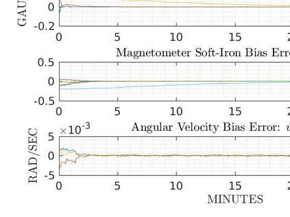 翻译:本条涉及外地机器人动态运动下3轴磁强计3轴磁强计动态线上估计和补偿硬铁和软铁偏差的问题,仅使用3轴磁强计和3轴角速度传感器的偏差测量。拟议的磁强计和角速度偏差测深仪(MAVBE)使用15州进程模型,将受角速度偏差影响的磁强仪信号的非线性进程动态编码起来,同时在延长的卡尔曼过滤框架内,同时估计9磁强偏差参数和3个角速感应传感器偏差参数。Bias参数当地可观察性经过数字评估。偏差校准信号加上3轴电动加速计信号用来估计偏差补偿磁度的测深方向。对MAVBE方法的性能进行了评估,与在数字模拟、实验室实验中广泛引用的仅使用2STEEEEP的磁力计方法进行非线性进程,同时同时在延长的卡尔曼过滤框架中,同时估计9个磁强计偏差值偏差参数和3个角测测深器传感器偏差参数参数参数。B参数的局部可观察性进行了数值评估。 偏差信号校准信号测量测测测测测测测测测测测测值,对切萨湾、MMD、美国和直度(AAAAVAF的精确度的精确度,要求的精确度估测测测度,对当地的估值为:MAB结果的精确度为要求的精确度,对当地的精确度的测程的估为:精确度,对当地的估值的估测算为:MAV的精确性估测度,对当地的估测度,对当地的估度,对当地的估值为要求的精确度,对当地的精确度,对地的估测算为:精确度,对地的估值为:精确度,对地的估,对地的估,对地性,对地的估测算为:对地的估测算为:精确性,对地的估测度,对地的估度,对地的估测度是的估程的估程的估的估程的估程的估程的估测程的估程的估程的估程的估为:MAAVAV