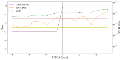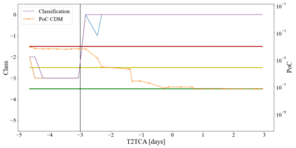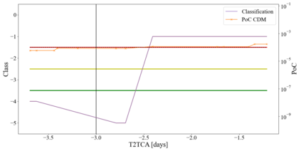 The paper presents an approach to the modelling of epistemic uncertainty in Conjunction Data Messages (CDM) and the classification of conjunction events according to the confidence in the probability of collision. The approach proposed in this paper is based on the Dempster-Shafer Theory (DSt) of evidence and starts from the assumption that the observed CDMs are drawn from a family of unknown distributions. The Dvoretzky-Kiefer-Wolfowitz (DKW) inequality is used to construct robust bounds on such a family of unknown distributions starting from a time series of CDMs. A DSt structure is then derived from the probability boxes constructed with DKW inequality. The DSt structure encapsulates the uncertainty in the CDMs at every point along the time series and allows the computation of the belief and plausibility in the realisation of a given probability of collision. The methodology proposed in this paper is tested on a number of real events and compared against existing practices in the European and French Space Agencies. We will show that the classification system proposed in this paper is more conservative than the approach taken by the European Space Agency but provides an added quantification of uncertainty in the probability of collision.