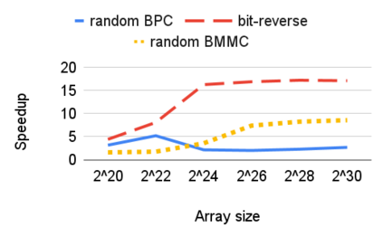 Optimal usage of the memory system is a key element of fast GPU algorithms. Unfortunately many common algorithms fail in this regard despite exhibiting great regularity in memory access patterns. In this paper we propose efficient kernels to permute the elements of an array, which can be used to improve the access patterns of many algorithms. We handle a class of permutations known as Bit Matrix Multiply Complement (BMMC) permutations, for which we design kernels of speed comparable to that of a simple array copy. This is a first step towards implementing a set of array combinators based on these permutations.
