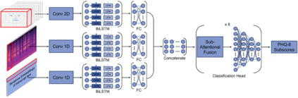 翻译:无法及时诊断和有效治疗抑郁症,导致全世界超过2.8亿人患有这种心理障碍; 抑郁症的信息线索可以从多种不同资源,如视听和文字数据中获取,从而增加对新的有效多模式聚合法的自动估算需求; 在这项工作中,我们从多模式数据中自动识别抑郁症,并引入一个分关注机制,将多种信息联系起来,同时利用革命双向LSTM作为我们的骨干; 为了证实这一想法,我们广泛试验DACIC-WOZ公共抑郁症评估基准,以不同评价模式为基础,考虑到性别偏见; 拟议的模型在发现重大抑郁症方面产生有效结果,精确度为0.89分数,F1分数0.70分,估计严重程度为4.92分量; 我们基于注意的融合模块一贯优于传统的迟发症综合法,并实现与以前公布的抑郁症估计框架相比的竞争性业绩,同时学习诊断病端和依赖更少的预处理步骤。