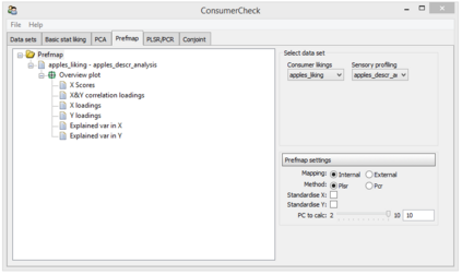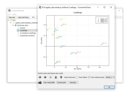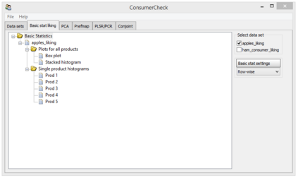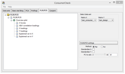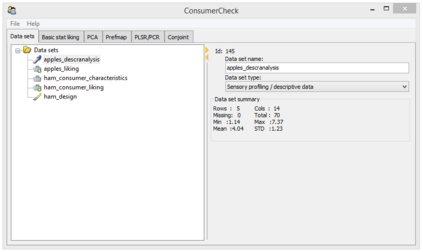 ConsumerCheck is an open source data analysis software tailored for analysis of sensory and consumer data. Since some of the implemented methods are generic, such as PCA, PLSR and PCR, other data from other domains may also be analysed with ConsumerCheck. The software comes with a graphical user interface and as such provides non-statisticians and users without programming skills free access to a number of widely used analysis methods within the field of sensory and consumer science. Computational results are presented in plots that are easily generated from the tree-controls within the graphical user interfaces. Since the construction of conjoint analysis models is not always straightforward, ConsumerCheck provides three previously defined model structures of different complexity. ConsumerCheck is an ongoing research project and the objective is to implement further statistical methods over time.