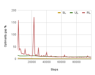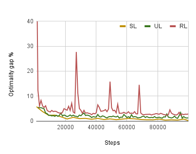 翻译:大约解决流动销售商问题的机器学习方法越来越多,但是,这些方法往往需要解决培训或使用需要大量调整的复杂强化学习方法。为避免这些问题,我们采用了一种新型的、不受监督的学习方法。我们为TSP使用一个整数线性程序来构建一个不需要正确实例标签的损失函数。随着差异的分散化,其最小值与最佳或近乎最佳的解决方案相吻合。此外,这一损失功能是可以区分的,因此可以直接用来培训神经网络。我们用一个图形神经网络来使用我们的损失功能,并在Euclidean和不对称的TSP上设计受控制的实验。我们的方法优势在于监督地学习不要求大标记数据集。此外,我们的方法的绩效超过了不对称 TSP的强化学习,与强化 Euclidean 实例的学习相似。我们的方法也比强化学习更加稳定和容易培训。