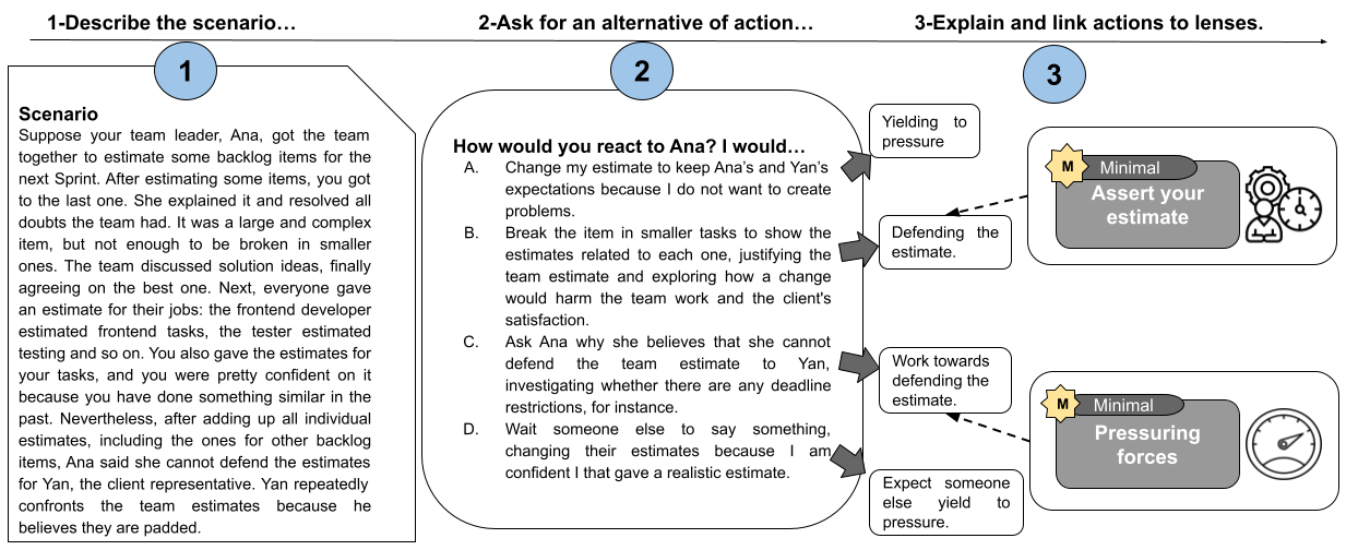 翻译:生产率提高和交付速度加快的压力日益渗透到软件组织中。这可以导致软件工程师像象象棋选手那样玩花招 -- -- 牺牲其技术上合理的估计,从而使其团队面临时间压力。反过来,时间压力可能会产生各种有害影响,例如产品质量差和情绪紧张,生产率下降,导致时间压力和延误增加:难以阻止的恶性循环。这表明需要从更被动的向压力屈服的战略转向更积极的维护软件估计的方法。因此,我们提出一种方法,支持软件估计者获得如何进行这种防御的知识,方法是采用一套包含在防御镜头中的谈判原则,通过数字模拟展示。我们通过与不同公司的软件从业者进行控制性实验,评估了拟议的方法。我们收集了参与者态度、主观规范、行为控制感知和意图的数据,以便根据“计划”的理论来维护其估计值。我们采用了一种经常使用的方法和刺客的方法。结果显示试验组参与者在与数字模拟相比,对压力估计值的数值进行对比后,提高了其价值。我们通过对数字模拟和透视镜头后学习了它们所理解的结果。他们选择了一种对数字压力判断的结果。