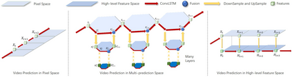 Despite video forecasting has been a widely explored topic in recent years, the mainstream of the existing work still limits their models with a single prediction space but completely neglects the way to leverage their model with multi-prediction spaces. This work fills this gap. For the first time, we deeply study numerous strategies to perform video forecasting in multi-prediction spaces and fuse their results together to boost performance. The prediction in the pixel space usually lacks the ability to preserve the semantic and structure content of the video however the prediction in the high-level feature space is prone to generate errors in the reduction and recovering process. Therefore, we build a recurrent connection between different feature spaces and incorporate their generations in the upsampling process. Rather surprisingly, this simple idea yields a much more significant performance boost than PhyDNet (performance improved by 32.1% MAE on MNIST-2 dataset, and 21.4% MAE on KTH dataset). Both qualitative and quantitative evaluations on four datasets demonstrate the generalization ability and effectiveness of our approach. We show that our model significantly reduces the troublesome distortions and blurry artifacts and brings remarkable improvements to the accuracy in long term video prediction. The code will be released soon.