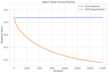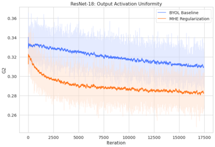 翻译:然而,我们从经验中发现,与对比方法相比,BYOL自我蒸馏模式下产生的图像展示在代表空间分布不均。 这项工作从经验中表明,对比损失造成的特征多样性有利于在BYOL使用时实现图像表述的统一性,从而提供更大的阶级间代表分离性。 此外,我们探索并倡导使用正规化方法,特别是将网络超球能量(即最大限度地增加英特普)的层位最小化,以鼓励代表性的统一性。我们表明,在标准损失的同时,直接优化统一度,或者将BYOL结构网络正规化,以最大限度地减少神经元超球能,可以产生更统一的分布,从而更好地为下游任务进行演示。