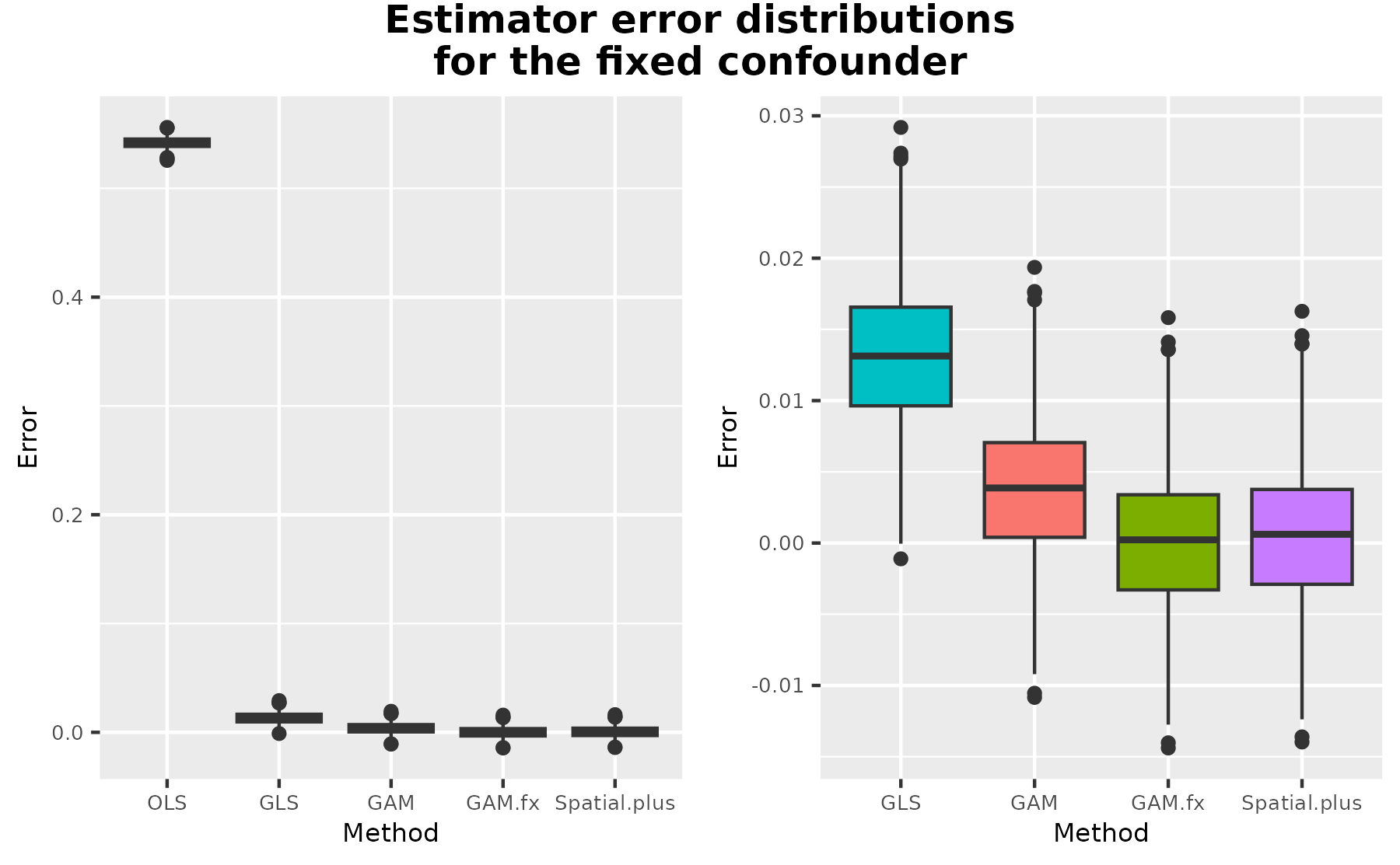 This paper addresses the asymptotic performance of popular spatial regression estimators on the task of estimating the effect of an exposure on an outcome in the presence of an unmeasured spatially-structured confounder. This setting is often referred to as "spatial confounding." We consider spline models, Gaussian processes (GP), generalized least squares (GLS), and restricted spatial regression (RSR) under two data generation processes: one where the confounder is a fixed effect and one where it is a random effect. The literature on spatial confounding is confusing and contradictory, and our results correct and clarify several misunderstandings. We first show that, like an unadjusted OLS estimator, RSR is asymptotically biased under any spatial confounding scenario. We then prove a novel result on the consistency of the GLS estimator under spatial confounding. We finally prove that estimators like GLS, GP, and splines, that are consistent under confounding by a fixed effect will also be consistent under confounding by a random effect. We conclude that, contrary to much of the recent literature on spatial confounding, traditional estimators based on partially linear models are amenable to estimating effects in the presence of spatial confounding. We support our theoretical arguments with simulation studies.